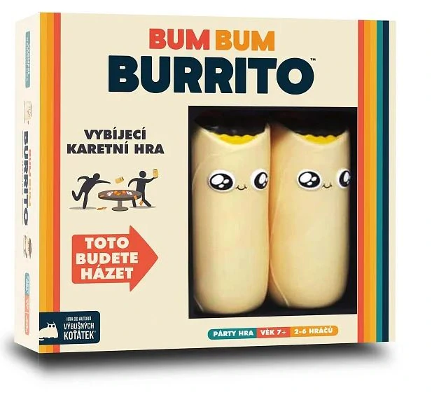 Toto je párty hra, jakou jste dosud zaručeně nehráli. Je to kombinace karetní hry a vybíjené, při které budete hledat trojice karet, sbírat body a házet burrity po ostatních hráčích.