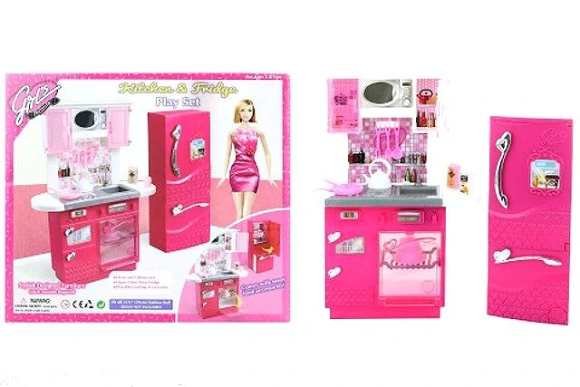 Glorie kuchyňský nábytek pro panenky. Obsahuje plně vybavenou kuchyňskou linku včetně lednice, trouby a myčky.