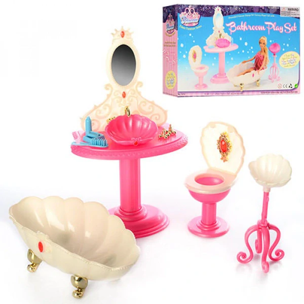 Glorie Luxusní koupelna obsahuje toaletku s umyvadlem 18 x 28 cm, vanu 23 x 8 cm, toaletu 15 x 7 cm a další příslušenství.