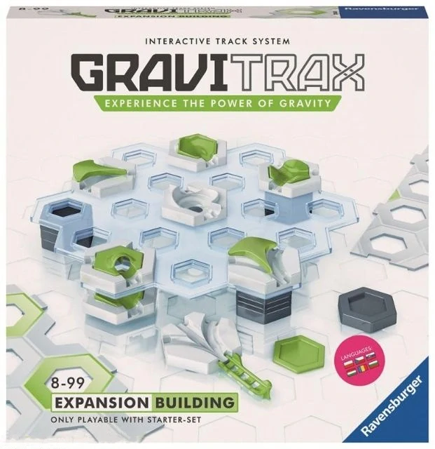 S touto sadou rozšíříte svou kuličkovou dráhu o dodatečné základní desky a další stavební prvky, které zapojíte do své startovní sady GraviTrax.