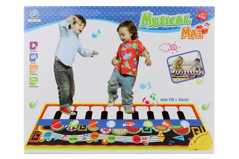 Hrací koberec piánko s hudebními nástroji.