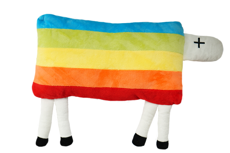 Plyšový polštářek ovečka z oblíbeného dětského programu Déčko vysílaného Českou televizí.